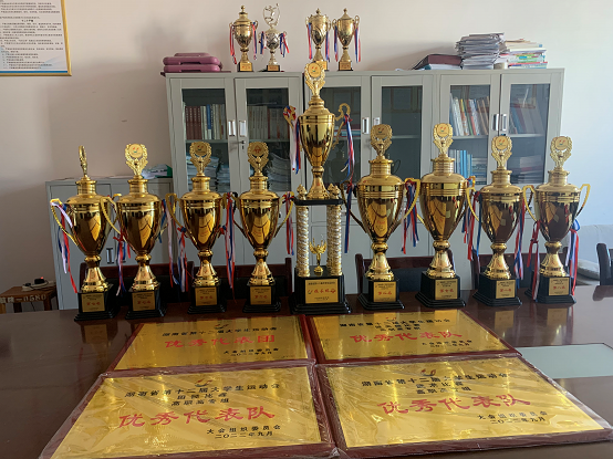 张家界航空职院代表团在学校关怀和教练辛勤指导下,积极备战、奋勇争先,共计参加了田径、武术、健美操、啦啦操、游泳、乒乓球、跆拳道、体育舞蹈、羽毛球、足球十个大项的比赛。其中,胡丙秋同学在武术的传统拳术项目上荣获金牌,张天雄、李银方分别斩获武术自选刀、自选剑项目银牌;吴桐 、钟浚祥、 胡智鸿 、马天元、 舒浩林摘取健美操项目银牌,刘博昕同学则将田径100米项目银牌收入囊中。学校以团体总分213.5分排名第七,并位居奖牌总数第六。