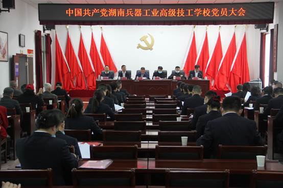 省工信厅机关党委二级调研员刘玉祥、人事教育处副处长杨其海,中共益阳市委教育工委委员、益阳市教育局党组成员副局长何立山,中共益阳市委组织部党代表联络办主任陈伟出席大会。学校党委书记唐放文,校长肖孝伟及领导班子和有选举权的党员共65名、预备党员3名齐聚一堂,擘画学校发展新蓝图。