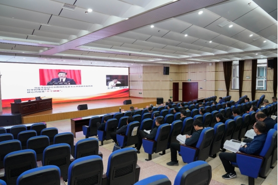 4月25日上午,张家界航空工业职业技术学院学习贯彻习近平新时代中国特色社会主义思想专题读书班第二天集中学习在学术报告厅举行,全体学员集中在线收看由中共中央党校(国家行政学院)马克思主义学院副院长陈曙光教授主讲的《习近平新时代中国特色社会主义思想概论》讲座,进一步深化对这一党的创新理论的理解和把握。