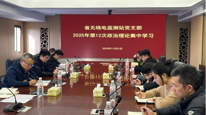 11月27日上午,省无线电监测站党支部开展2025年第12次集体学习,深入学习习近平总书记在党的二十届四中全会上的报告和讲话、《中共中央关于制定国民经济和社会发展第十五个五年规划的建议》,学习沈晓明书记在2025年第11期湘江大讲堂上的讲话精神,传达厅纪检系统专题培训班有关精神,2名同志作研讨交流发言。