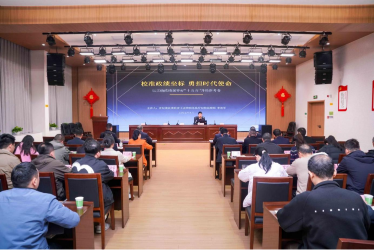 3月24日,省工业和信息化行业事务中心召开2026年党的建设暨党风廉政建设工作会议,恰逢全党开展树立和践行正确政绩观学习教育,省纪委监委驻省工业和信息化厅纪检监察组紧扣学习教育要求,依托 “三联三强” 活动开展工作指导,副组长李进军受邀到会讲授廉政党课,中心党委书记、主任邓光亮主持会议,中心班子成员及全体在职干部参加学习。