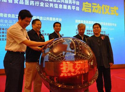 5月26日上午9点38分,省领导蔡力峰、唐之享和湖南省经信委谢超英主任、湖南省食品行业联合会·湖南省医药行业协会刘送保会长、湖南经桥网络科技姜志强董事长等领导一同按向仪式启动球,宣告湖南省食品工业企业诚信信息公共服务平台暨湖南食品医药行业公共信息服务平台隆重启动,旗下湖南食品企业诚信网、湖南食品网、湖南医药在线三大行业网站正式上线运营,实现为行业服务、为企业服务、社会公众服务。