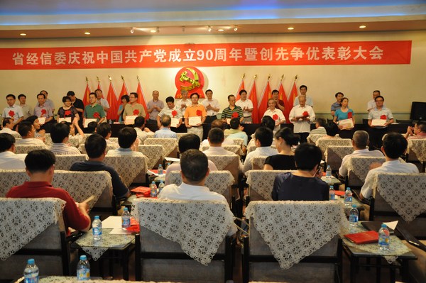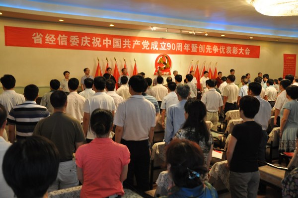 7月1日上午,省经济和信息化委员会集中收看北京人民大会堂举行的庆祝中国共产党成立90周年大会后,下午隆重召开了经信委系统庆祝中国共产党成立90周年党课教育暨创先争优表彰大会。委党组副书记、副主任钟志慧主持大会。委党组书记、主任谢超英带领大家学习领会胡锦涛同志在庆祝中国共产党成立90周年大会上的重要讲话,以“牢记党的宗旨,深入创先争优”为主题讲了一堂理论联系实际的党课。他以我党在延安窑洞前发表的《为人民服务》,在西柏坡举行的七届二中全会提出的“两个务必”,到十六大以来党中央多次强调的“权为民所用,情为民所系,利为民所谋”,引导大家时刻牢记、坚持践行全心全意为人民服务的宗旨,坚定理念信念,增长知识本领,加强党性修养,矢志奋斗拼搏,在人生的广阔舞台上充分保持聪明才智,为湖南“四化两型”的美好前景、为中华民族的伟大复兴尽情展现人生价值。
