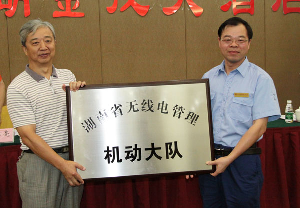 座谈会前,举行了湖南省无线电管理机动大队成立大会。谢超英主任给机动大队授了牌。