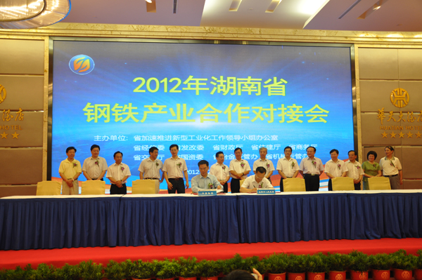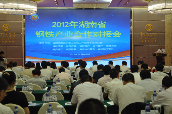 2012年6月21日上午,由省加速推进新型工业化工作领导小组办公室、省经信委、省发改委、省财政厅、省住建厅、省商务厅、省交通厅、省国资委、省冶金行管办、省机械行管办联合主办的2012年湖南钢铁产业合作对接会在长沙举行。省委常委、省人民政府副省长陈肇雄出席会议并讲话,省人大副主任陈叔红,省人民政府科技顾问曾庆炎等领导出席,省直有关部门、益阳、长沙等地区和钢铁、工程机械、汽车、建筑等行业企业代表,共200多人参加了对接会。省经信委主任、党组书记谢超英致辞,益阳市人民政府市长胡忠雄、省国资委副主任杨平发言,华菱集团、冷钢集团和中联重科、远大集团、中建五局等5家企业代表分别作推介发言和对接发言。对接会由省经信委副主任殷林波主持。