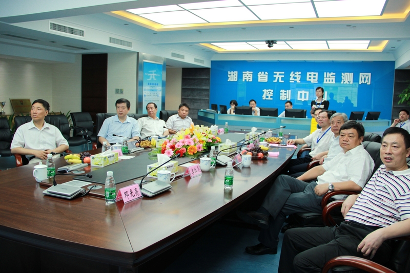 2012年7月30日上午,工业和信息化部刘利华副部长在部规划司刘贤利副司长、国家无线电监测中心刘岩主任和省经信委谢超英主任、省通信管理局李湘宁局长等的陪同下,冒着酷暑来到湖南信息大厦新建成的湖南省无线电监测网控制中心视察,并看望省无线电监测站干部职工。