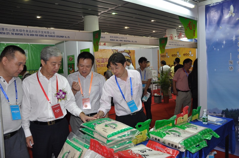 在绿色食品馆中,谢超英主任来到“蜜蜂哥哥”蜂业产品展位前,饶有兴致地了解其蜂蜜产品种类和营销网络建设情况。当听到其通过发展蜂蜜深加工提升附加值时,谢超英主任表示赞赏,并要求其注重绿色品牌建设,加强食品安全监管。在祁阳县七里香有机大米展位时,其负责人一句“人是铁饭是钢,吃米就吃七里香”的广告语,令观展领导无不莞尔,谢超英主任询问了其产品的主要销售渠道,建议其树立品牌意识,提升产品在省外市场的知名度。