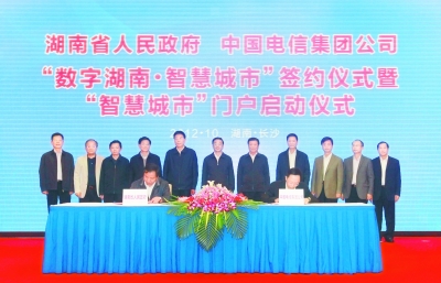 近日,省政府与中国电信集团公司在长沙签署《共同建设“数字湖南·智慧城市”信息化战略合作框架协议》。省委书记、省人大常委会主任周强见证签约并宣布“数字湖南·智慧城市”门户启动;省委副书记、省长徐守盛,中国电信集团公司党组书记、董事长王晓初在仪式上致辞。