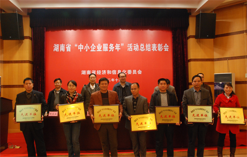 12月1日,湖南省“中小企业服务年”活动总结表彰大会在长沙举行。省经信委副主任黄东红、省中小企业局局长黄学工出席会议。