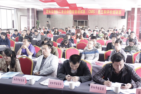 本次培训由我省推进食品工业企业诚信管理体系评价合作机构——国家认证认可监督管理委员会认证认可技术研究所乔东所长亲自授课,他从食品工业企业诚信管理体系评价的基本信息、发展历程、CCAI贡献、近期工作、评价准则、诚信体系等六个方面进行了深入浅出的讲解,并现场答疑。会议还印发了“第四届全国道德模范-诚实守信模范”、湖南省临湘市十三村食品公司李国武同志事迹材料,号召我省广大食品企业向他学习。各市州经(工)信委有关行业管理科(处)负责人、50余家重点食品工业企业负责人和相关业务人员共100余人参加了培训。