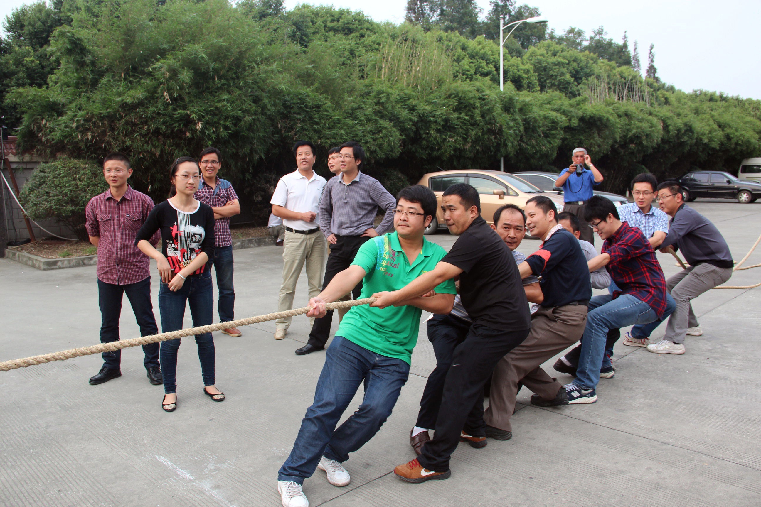 短暂的培训班,活动丰富多彩。图为分组进行的拔河比赛