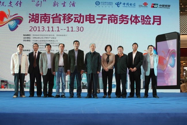 11月2日,湖南省首届“移动电子商务体验月”活动开幕式在长沙万达广场盛大举行,我委谢超英主任、陈松岭副主任及省商务厅、中国人民银行长沙中心支行、长沙市人民政府、湖南移动等单位负责人出席开幕仪式,湖南省政协副主席、湖南省移动电子商务产业联盟理事长张大方宣布活动启幕。