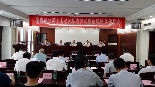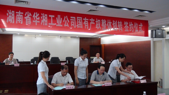 6月29日下午,华湘公司国有产权整体划转签约仪式在军工大厦15楼会议室隆重举行。省经信委副主任、省国防科工局副局长唐勇和省国资委副主任卢光祖、兵器集团董事长金银国出席签约仪式并签订了划转协议。省政府办公厅、省国防科工局、省国资委相关处室领导,兵器集团机关和华湘公司机关全体员工及下属子公司法人代表参与并见证了签约仪式。