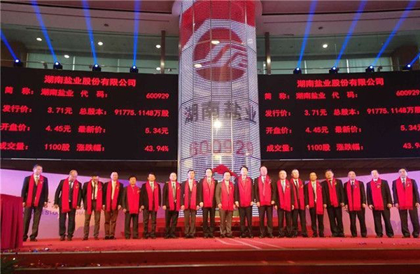 3月26日,被市场誉为“中国盐改第一股”的湖南盐业股份有限公司(简称湖南盐业,股票代码“600929”) 在上交所挂牌上市,正式登陆 A 股市场。省政府副秘书长、办公厅主任陈仲伯, 省经信委副主任黄宝林、省国资委副主任樊建军、省金融办副主任张新青等出席上市仪式。