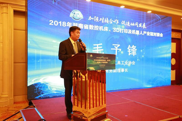 殷林波副主任在讲话中指出,装备制造业是支撑国家综合国力的重要基石,数控机床、机器人及3D打印是装备制造业的重点领域和两化深度融合的重要载体。数控机床、机器人及3D打印产业发展得到了省委省政府的高度重视,已经纳入湖南制造强省的重要领域,并列入省内重点发展的工业新兴优势产业链加以推进。他强调,在深入贯彻落实党的十九大、全国两会精神之际举办此次产业链对接会,具有十分重要的意义。湖南正以争创长株潭衡“中国制造2025”国家级示范区为契机,加快打造工程机械、轨道交通、中小航空发动机等三大产业集群。他希望省内数控机床、机器人及3D打印企业要抢抓发展先机,立足自身优势,聚集数字化、网络化、智能化和绿色化,融入三大产业集群建设,在开放合作中做大做强,为建设制造强省作出更大的贡献。