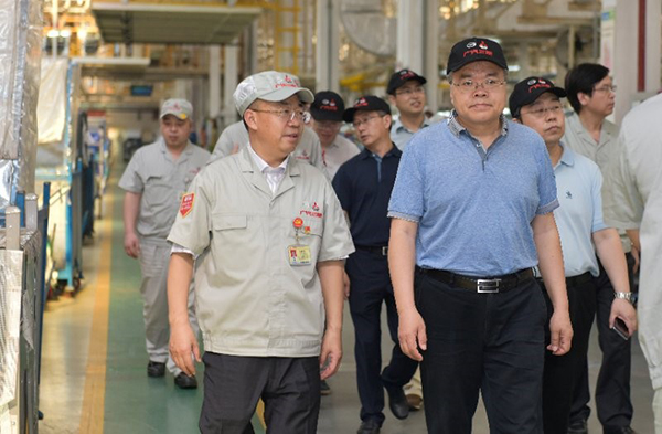 为推动新能源汽车动力蓄电池回收利用,深入了解废旧动力蓄电池回收利用试点开展情况,2018年5月16日至17日,工业和信息化部节能与综合利用司司长高云虎同志率队来湘对我省新能源汽车动力蓄电池回收利用工作进行了专题调研,省经信委党组副书记、副主任李志坚同志以及节能与综合利用处、装备工业处有关同志参加了调研。