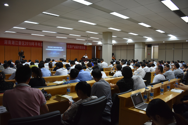 7月27日下午,省经信委党组书记、主任曹慧泉应邀出席湘江新区2018年半年度经济形势分析会,以《优先发展工业新兴优势产业链 吹响湖南制造业高质量发展的集结号》为题进行现场授课。长沙市委常委,湖南湘江新区党工委副书记、管委会主任张迎春出席并主持。