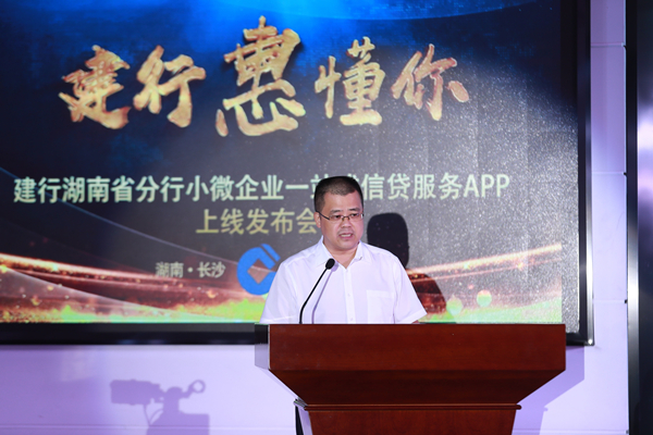 9月4日下午,建行湖南省分行小微企业一站式信贷服务“建行惠懂你”APP上线发布,省经信委党组成员、总经济师熊琛出席发布会并致辞。