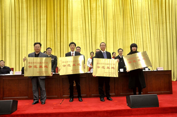 会上,长沙市高新区管委会、江麓机电集团有限公司、南华大学、湖南航天环宇通信科技股份有限公司等作了典型交流发言。会上颁发了2018年度湖南省国防科学技术进步奖获奖项目,并为常德经济技术开发区、长沙开福高新技术产业开发区、娄底娄星工业集中区、永州经济技术开发区等4家湖南省军民融合产业示范基地授牌。