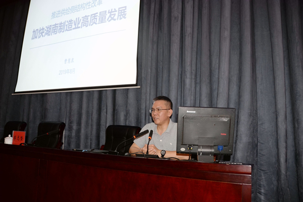 曹慧泉以“推进供给侧结构性改革,加快湖南制造业高质量发展”为主题,为全体学员上了精彩的第一课。他聚焦社会主要矛盾的变化与高质量发展的要求、国家战略重点与湖南战略选择、下阶段重点工作三个方面,阐述了推动湖南制造业高质量发展的重大意义、主要抓手和关键措施。