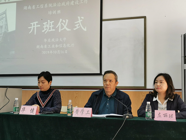 10月15日-19日,2019年全省工信系统法治政府建设工作培训班在华东政法大学举行。我厅相关业务处室和厅属单位行政执法人员、部分综合处室干部,以及各市州工信局分管法规工作领导和相关科室负责人、部分规范行政执法示范单位负责人以及各市州无线电管理单位负责人参加了培训。省工信厅黄学工总工程师参加开训仪式并对培训提出了具体要求,华东政法大学继续教育学院副院长左丽珺到会致辞。