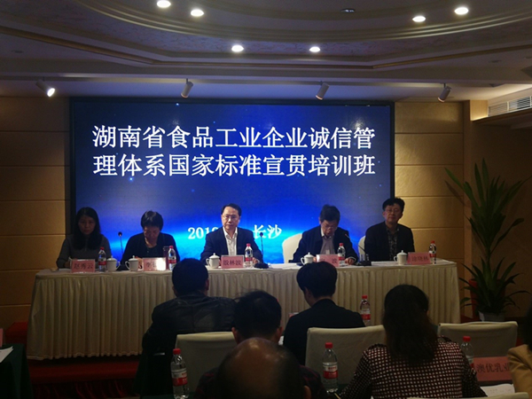 10月24-25日,省工信厅和省食品行业联合会在长沙共同举办全省2019年食品工业企业诚信管理体系国家标准宣贯培训班,全省各市州工信局及部分县市区工信局消费品工业科(处)有关负责人和105家食品工业企业代表共140人参加了培训。培训班邀请国家市场监管总局认证认可技术研究中心李桂芝、朱亚贤和赵秀云3位专家授课,省工信厅消费品工业处处长向波主持开班仪式,省工信厅巡视员殷林波出席开班仪式并讲话。
