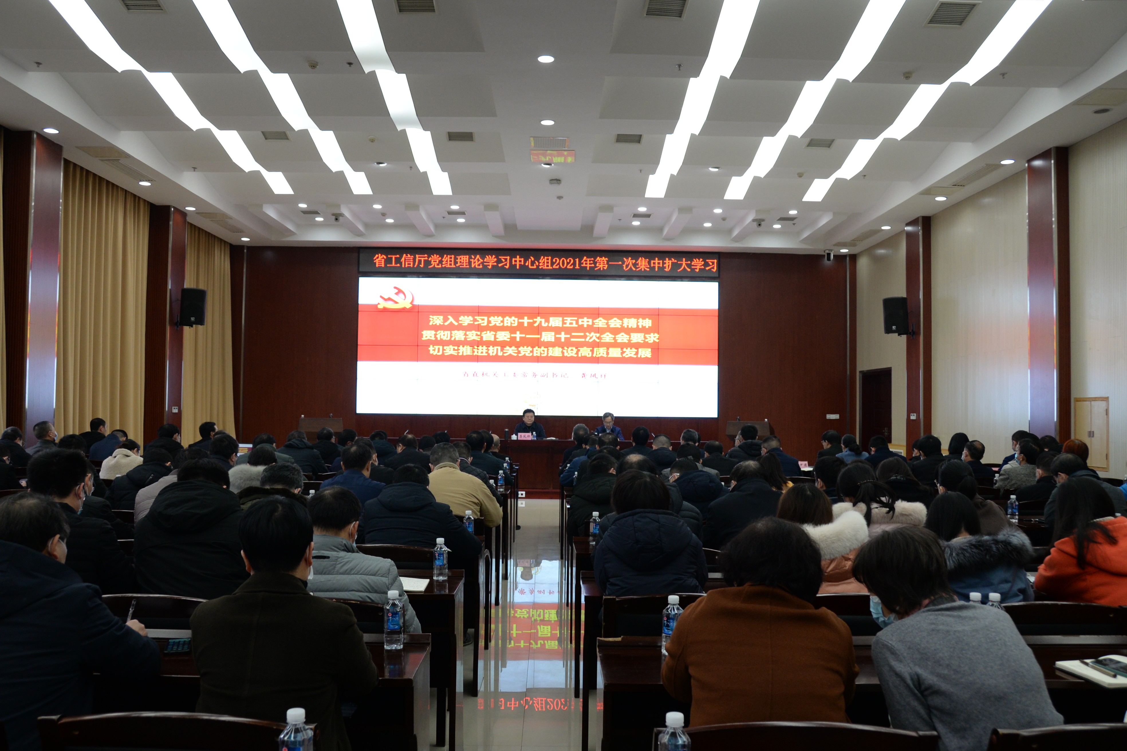 1月22日上午,省工信厅党组理论学习中心组开展2021年第1次集中扩大学习。本次学习分为两个阶段,第一阶段宣讲学习,厅党组副书记、副厅长李志坚主持,全体机关干部参加。第二阶段集中学习,厅党组书记、厅长曹慧泉主持,全体厅领导、处室负责人参加学习。