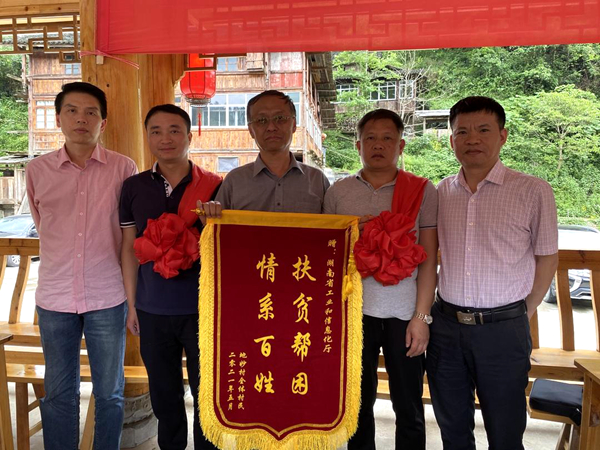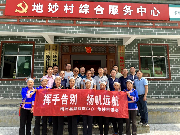 靖州融媒体中心5月13日讯(记者 王璨)5月12日,省工业和信息化厅驻三锹乡地妙村帮扶工作队届满离村返回原单位,村民们得知后,自发来到村口送行,并送上一面写有“扶贫帮困 情系百姓”的锦旗。