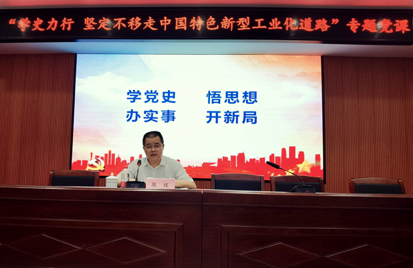 熊琛指出,工业化在百年党史中留下了浓墨重彩的一笔。从建党百年回望中国特色社会主义新型工业化的发展历程,我们有更深刻的启迪、更深层的思考、更坚定的信心和更强大的力量。他分别从中国特色社会主义工业化的探索、湖南新型工业化发展历程和坚定不移走中国特色新型工业化道路等三个维度深入浅出地进行了阐述,立意高远、内涵深刻、实践性强。参加听课的党员纷纷表示,要深刻认识到党领导工业和信息化事业发展的辉煌历程和伟大成就,更加坚定走中国特色社会主义新型工业化道路的信心,为着力打造国家重要先进制造业高地贡献力量。