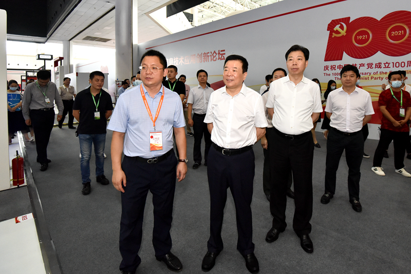 7月13日,副省长陈飞到2021信息技术应用创新展览现场观展。