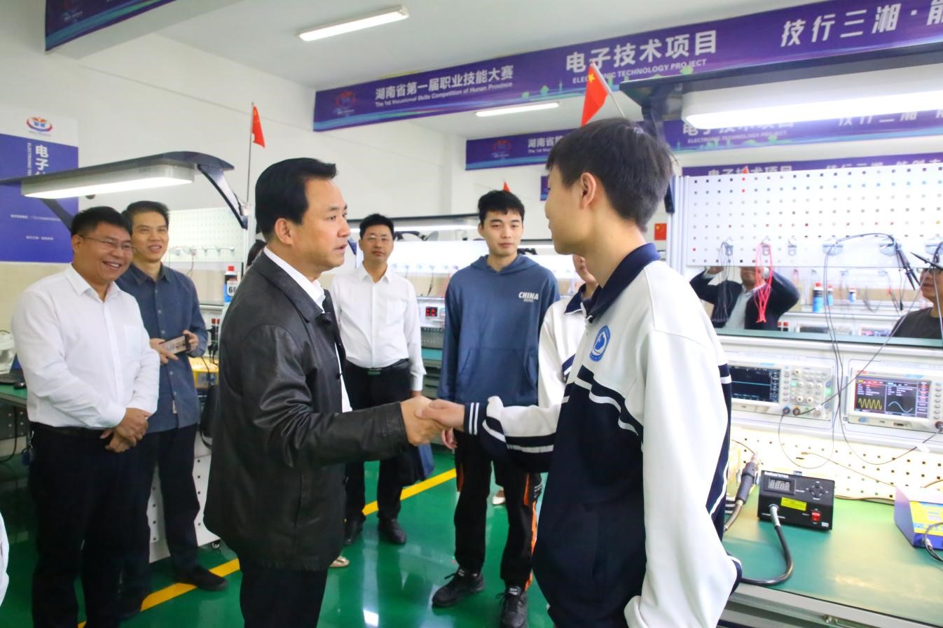 座谈会前,杨亲鹏先后前往学院实训基地、学生公寓等调研,与师生亲切交谈,详细了解学生学习情况、人才培养计划和技能竞赛情况,叮嘱老师要把工匠精神贯穿人才培养全过程,牢记“为党育人、为国育才”使命,勉励学生要树立远大理想、刻苦锤炼技能、传承工匠精神,走技能成才、技能报国之路。