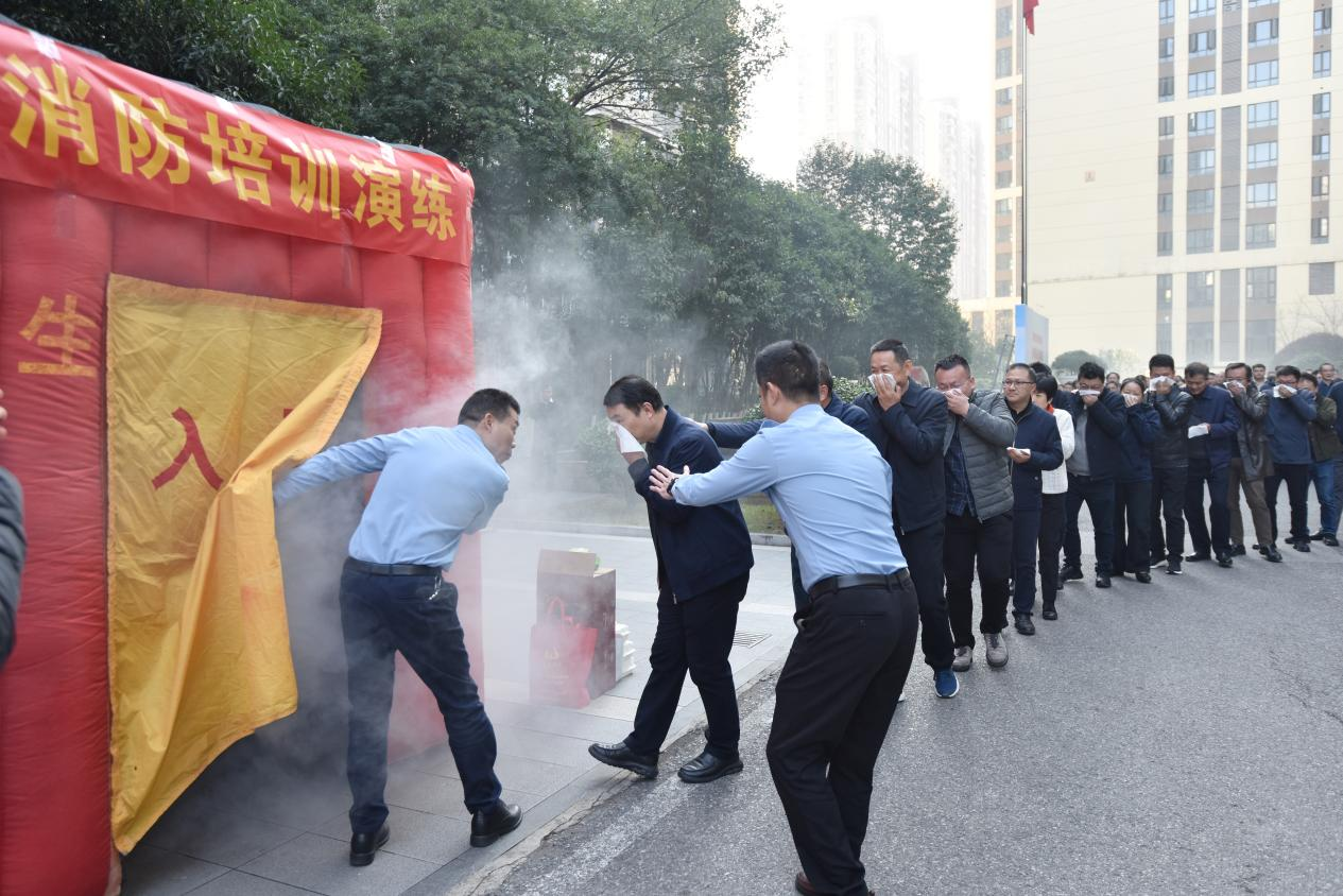 当日下午3时,演练模拟办公楼三层发生“火情”。警报响起后,应急广播立即启动,全体人员在安全员指引下,迅速沿疏散通道低姿、掩口鼻有序撤离至前坪安全区域,过程紧张有序。在随后进行的模拟烟雾逃生体验中,参训人员亲身感受了黑暗浓烟环境下的正确逃生方法。