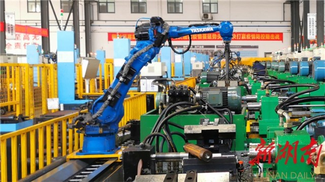 在这家企业1.5万平方米的生产车间里,记者切身感身到了生产如火如荼的场景:设备马达轰鸣、工业机器人手臂上下飞舞、物流装卸车穿梭如流,员工戴着口罩紧张而忙碌。