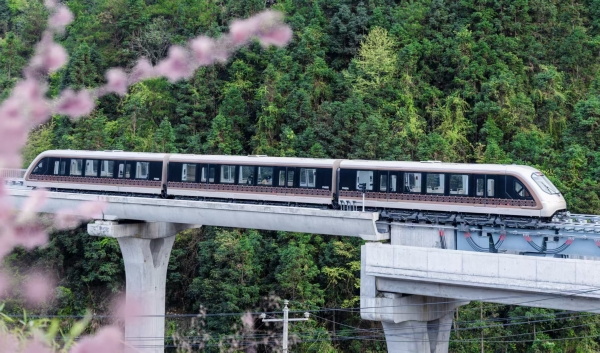 凤凰磁浮列车采用3节编组,设计时速100公里每小时,具有绿色、安全、无摩擦、低噪音等优势。