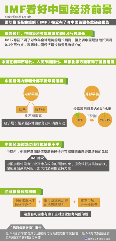 北京时间8月12日晚,国际货币基金组织(IMF)公布了与中国第四条款磋商报告,对中国经济金融形势进行了分析评估。报告指出,中国正在继续转向可持续的增长,在很多领域取得进展,但也面临不少挑战。国内业界如何评价这份报告?中国经济在实现可持续增长的道路上面临怎样的机遇和挑战?