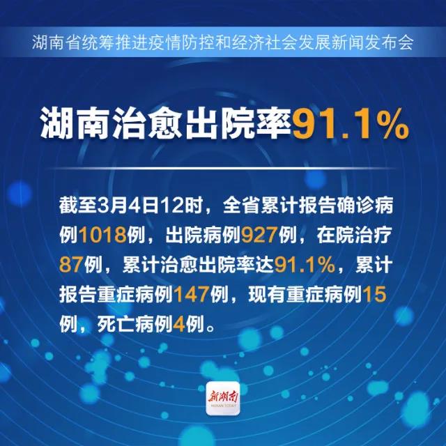 湖南治愈出院率91.1%,114个县市区14天以上0新增,96条“干货”“硬核”政策助力经济恢复……3月4日下午,湖南省政府新闻办召开新闻发布会,一个个数字、一条条措施,让人精神振奋。看完这几张图,我们或许更有理由相信,春天正在到来。