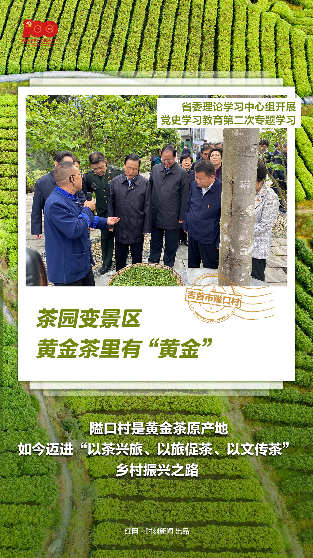4月15日上午8点30分,湖南省委书记、省人大常委会主任许达哲,省委副书记、省长毛伟明等省委理论学习中心组成员抵达吉首市马颈坳镇隘口村万亩黄金茶园,听取茶旅融合情况介绍。