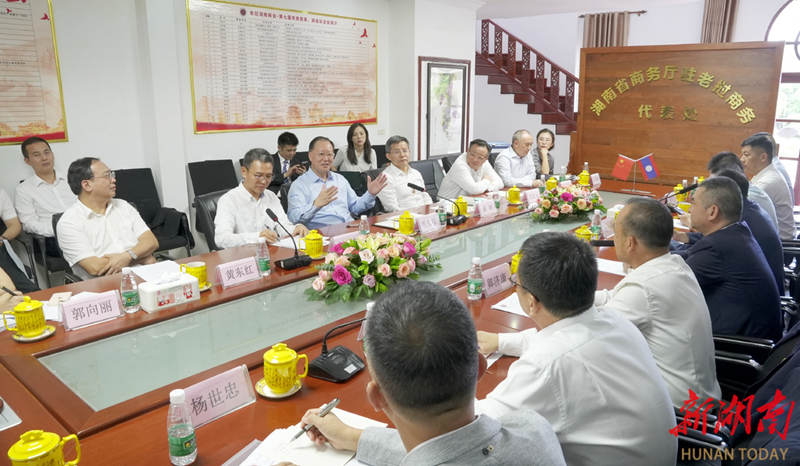 △9月5日,毛伟明来到老挝湖南商会,与在老湘商亲切座谈。