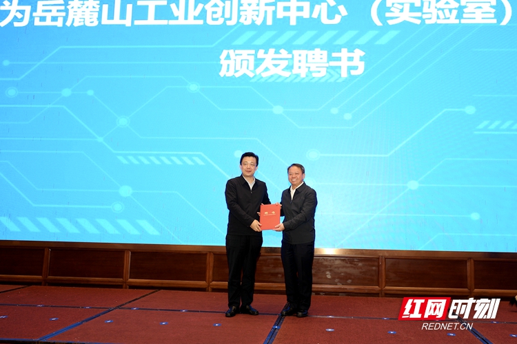 副省长秦国文出席成立大会,为湖南大学校长、岳麓山工业创新中心(实验室)主任段献忠和中国工程院院士、岳麓山工业创新中心(实验室)专家委员会主任黄伯云颁发聘书。中国工程院副院长、中国工程院院士钟志华受聘岳麓山工业创新中心(实验室)首席科学家并线上致辞。