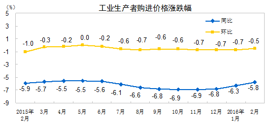 二、工业生产者购进价格 | -0.5 | -5.8 | -6.0 |