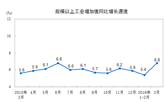 分行业看,3月份,41个大类行业中有38个行业增加值保持同比增长。其中,农副食品加工业增长4.7%,纺织业增长7.3%,化学原料和化学制品制造业增长8.9%,非金属矿物制品业增长9.8%,黑色金属冶炼和压延加工业增长3.3%,有色金属冶炼和压延加工业增长8.9%,通用设备制造业增长6.0%,专用设备制造业增长4.1%,汽车制造业增长11.4%,铁路、船舶、航空航天和其他运输设备制造业增长3.3%,电气机械和器材制造业增长9.4%,计算机、通信和其他电子设备制造业增长8.4%,电力、热力生产和供应业增长4.1%。
