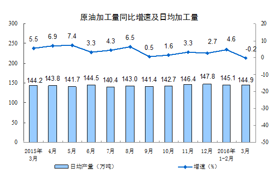 原油加工量(万吨) | 4491 | -0.2 | 13236 | 3.1 |