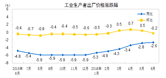 据测算,在6月份-2.6%的全国工业生产者出厂价格总水平同比降幅中,去年价格变动的翘尾因素约为-3.4个百分点,新涨价因素约为0.8个百分点。