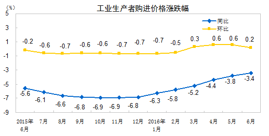 工业生产者购进价格中,燃料动力类价格同比下降7.2%,有色金属材料及电线类价格下降5.7%,化工原料类价格下降4.2%,黑色金属材料类价格下降4.1%,建筑材料及非金属类价格下降3.2%。