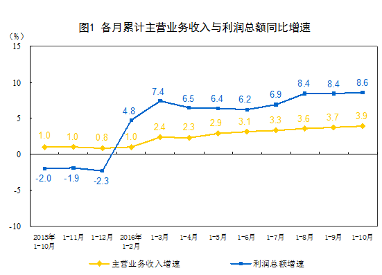 10月份,规模以上工业企业实现利润总额6161亿元,同比增长9.8%,增速比9月份加快2.1个百分点。