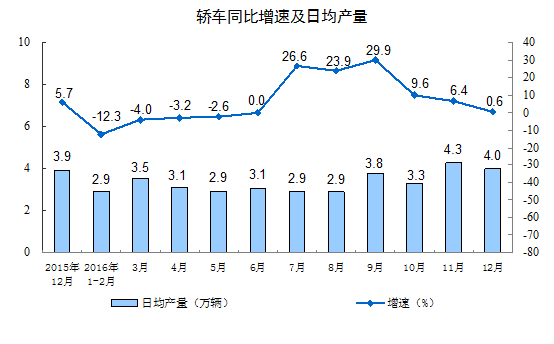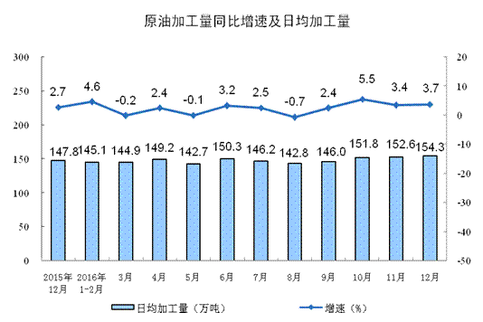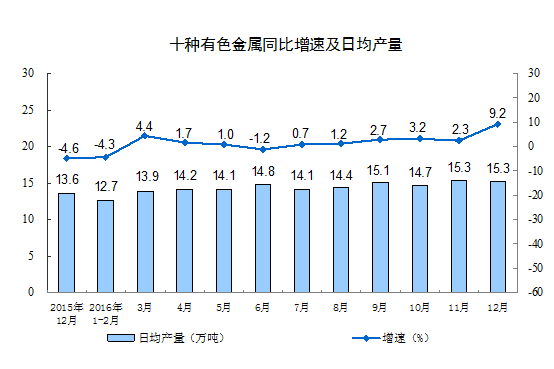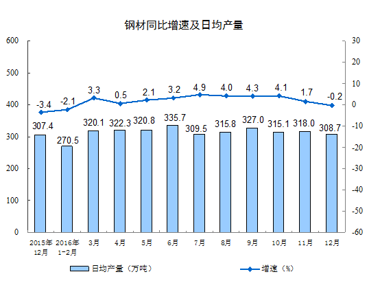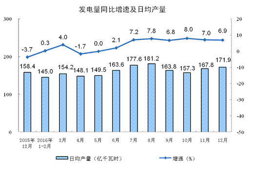 分产品看,12月份,统计的589种主要产品中有376种产品同比增长。其中,钢材9571万吨,同比下降0.2%;水泥19979万吨,下降 1.2%;十种有色金属473万吨,增长9.2%;乙烯152万吨,下降1.0%;汽车298.2万辆,增长12.7%;轿车124.2万辆,增长0.6%;发电量5329亿千瓦时,增长6.9%;原油加工量4782万吨,增长3.7%。