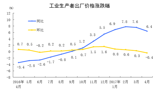 一、工业生产者出厂价格 | -0.4 | 6.4 | 7.2 |
