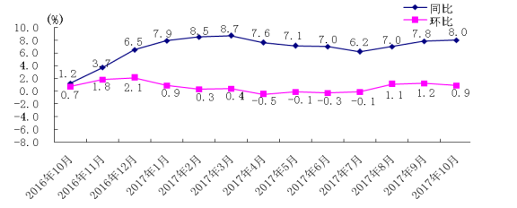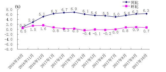 图1 工业生产者出厂价格涨跌幅(2016.10-2017.10)