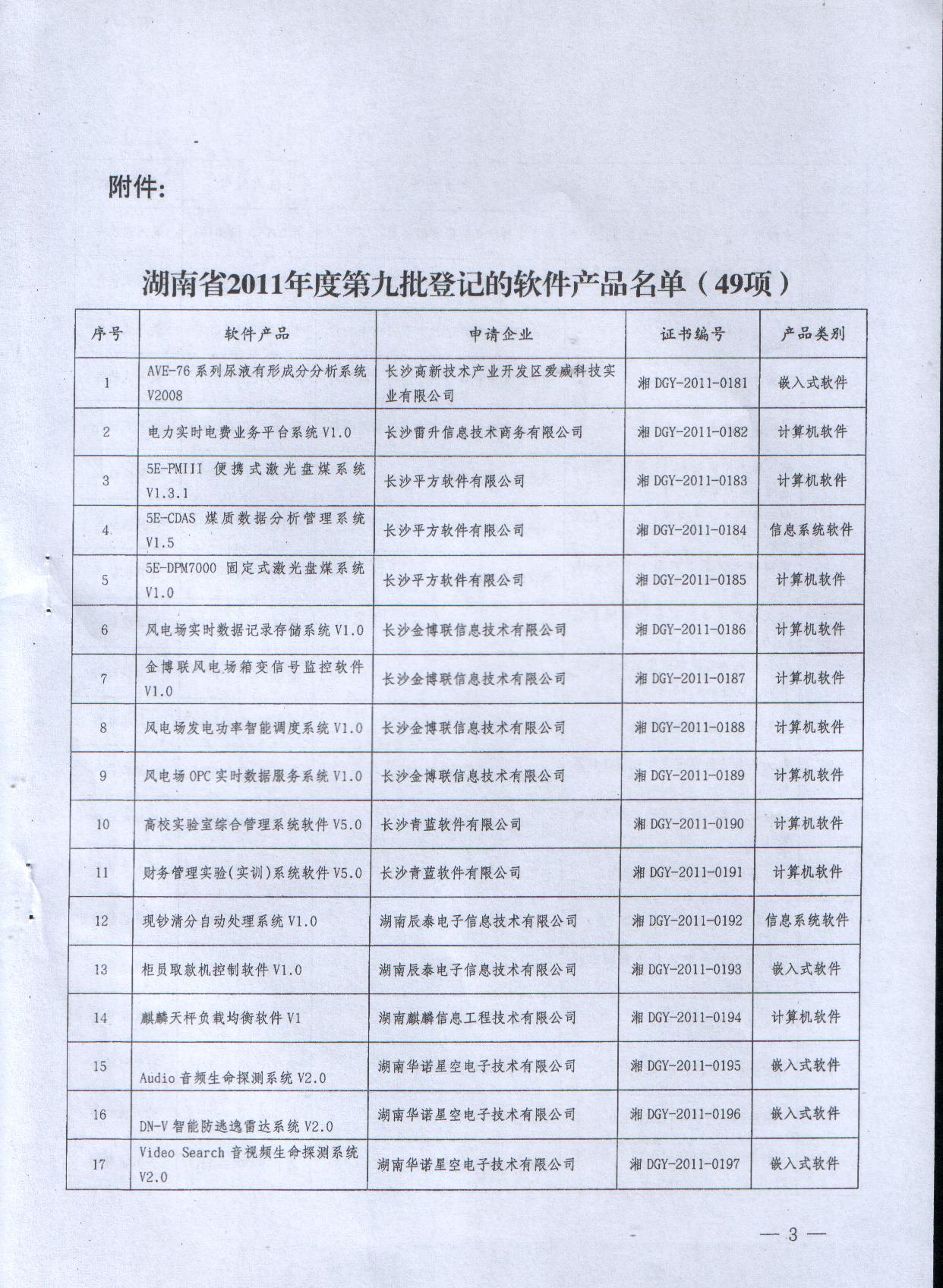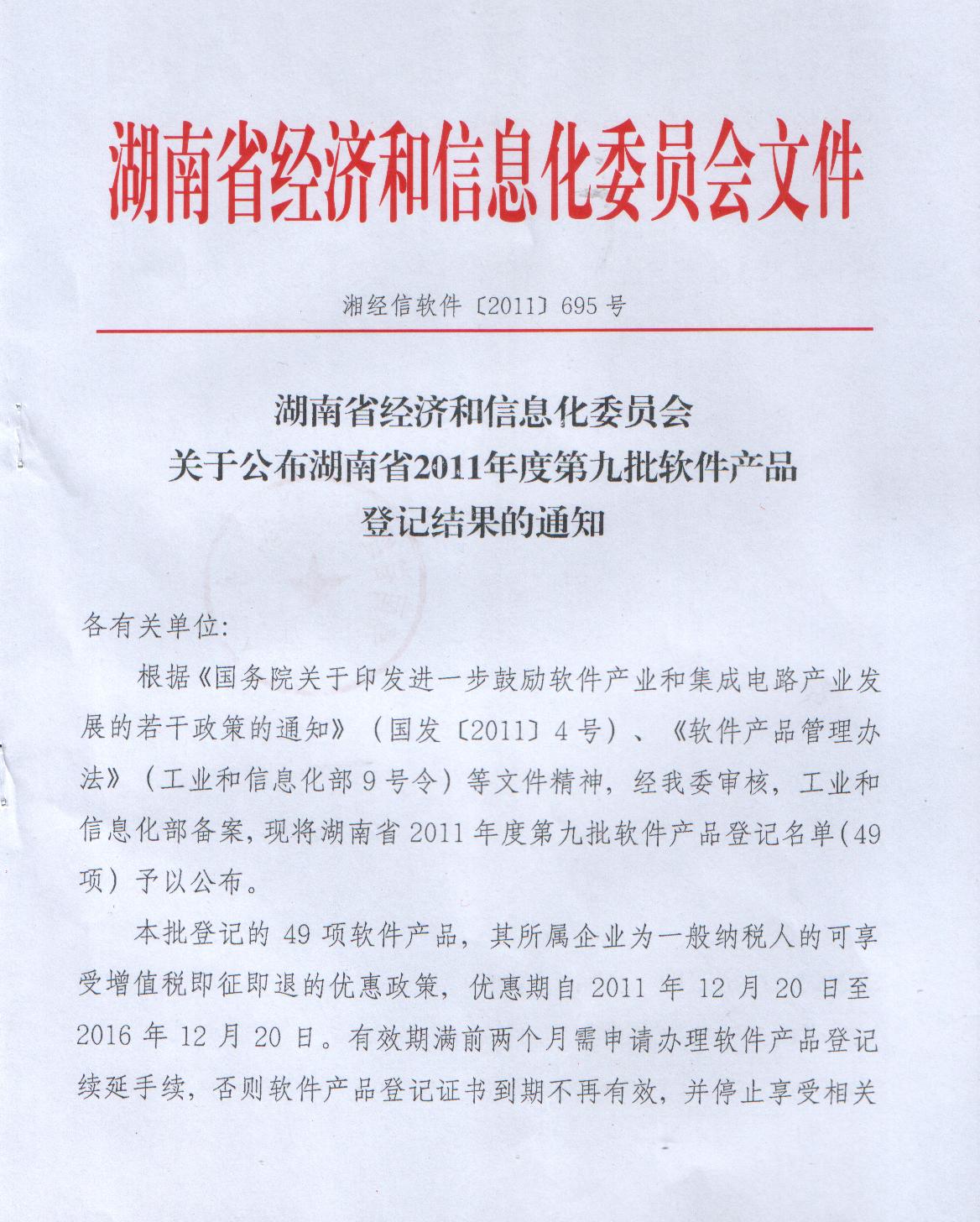 湖南省经济和信息化委员会关于公布湖南省2011年度第九批软件产品登记结果的通知