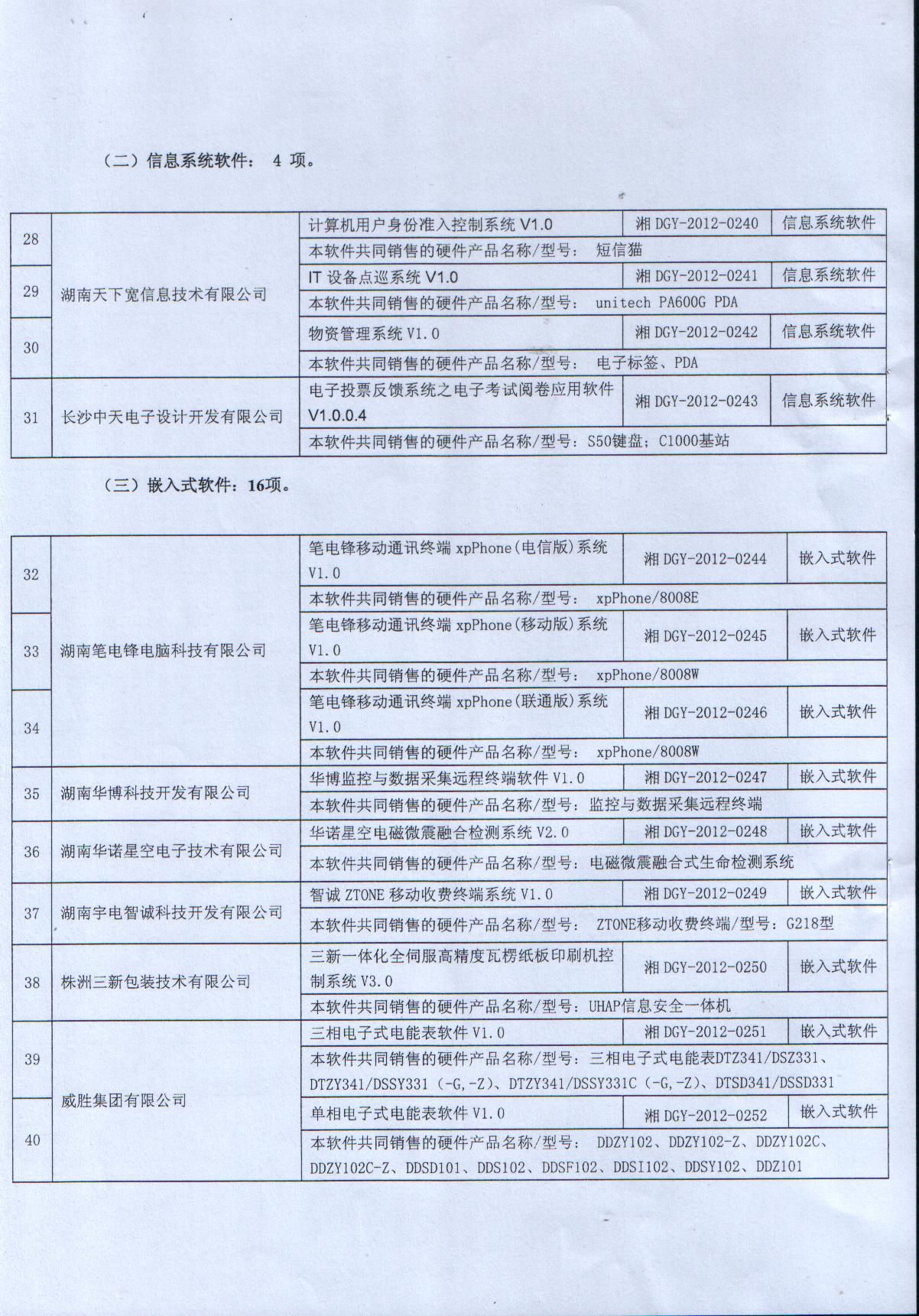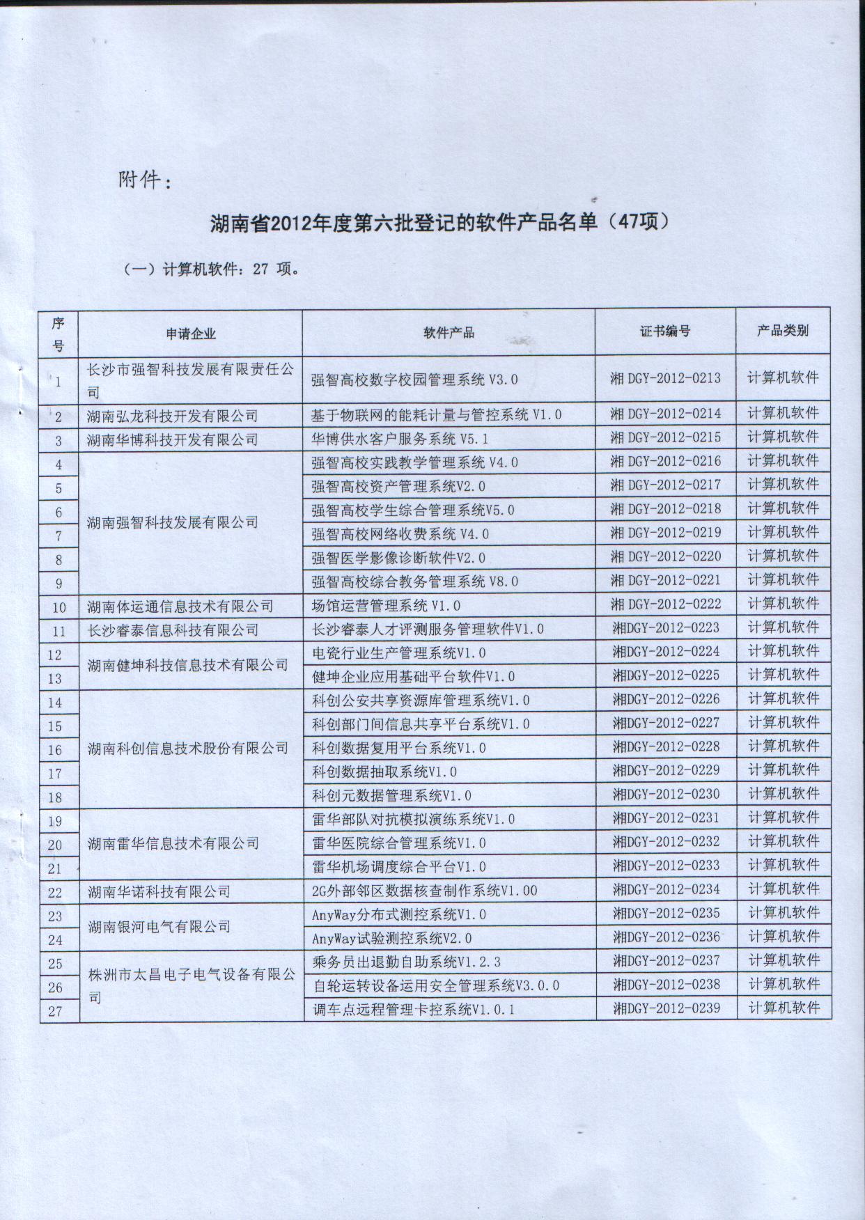 湖南省经济和信息化委员会关于公布湖南省2012年度第七批软件产品登记的通知